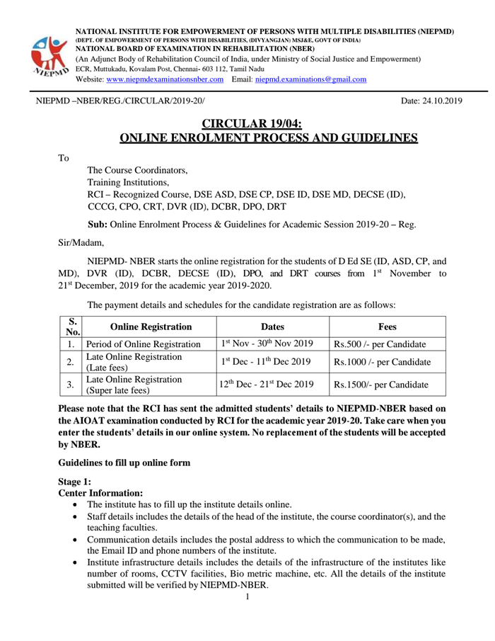 Enrollment notice D.Ed special education ID, CP, ASD courses...