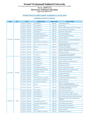 Swami Vivekanand Subharti University , Meerut Examination Notice...