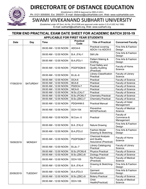Swami Vivekanand Subharti University,Meerut August 2019 Practical Examination notice...