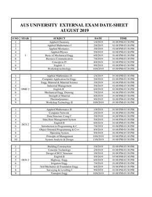 Arunachal University of studies, Namsai, Arunachal Pradesh examination date sheet August 2019...