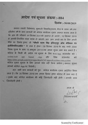 Swami Vivekanand Subharti University, Meerut Notice regarding to submit the fees 1st year and 2nd year and 3rd year students Notice session 2019 - 2020...