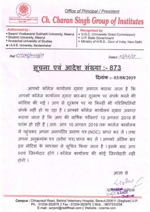 Swami Vivekanand Subharti University, Meerut date August 2019...