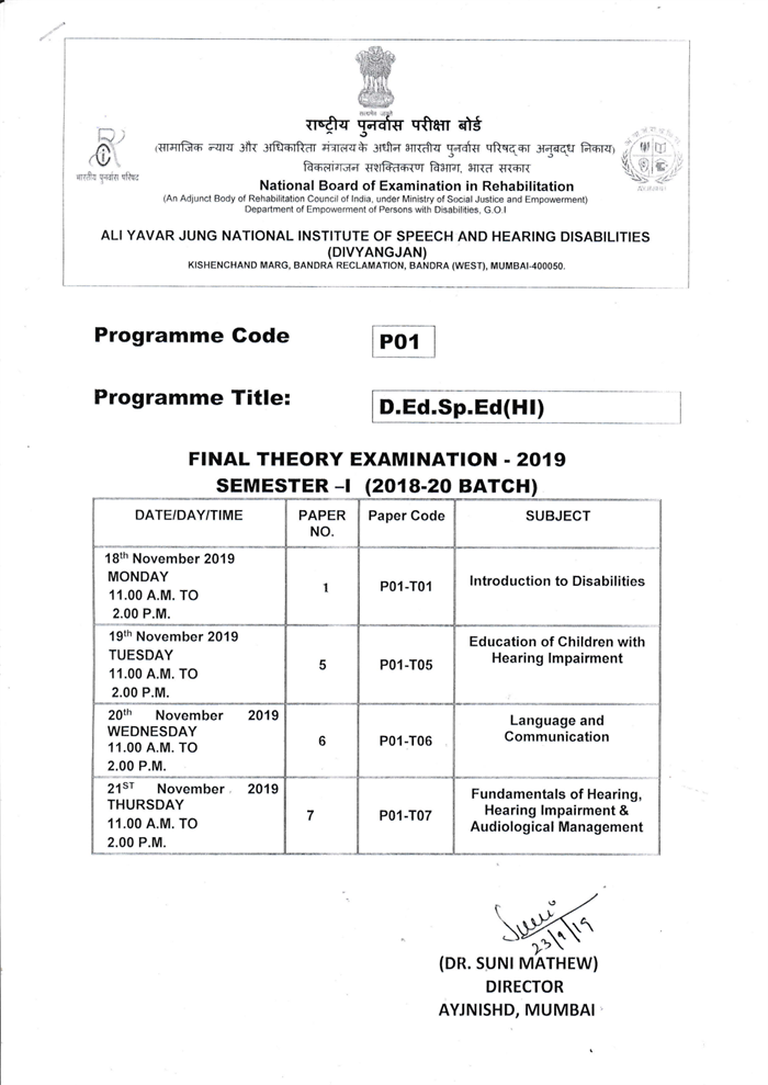 D.Ed Special Education HI Annual Examination Programme 2019...
